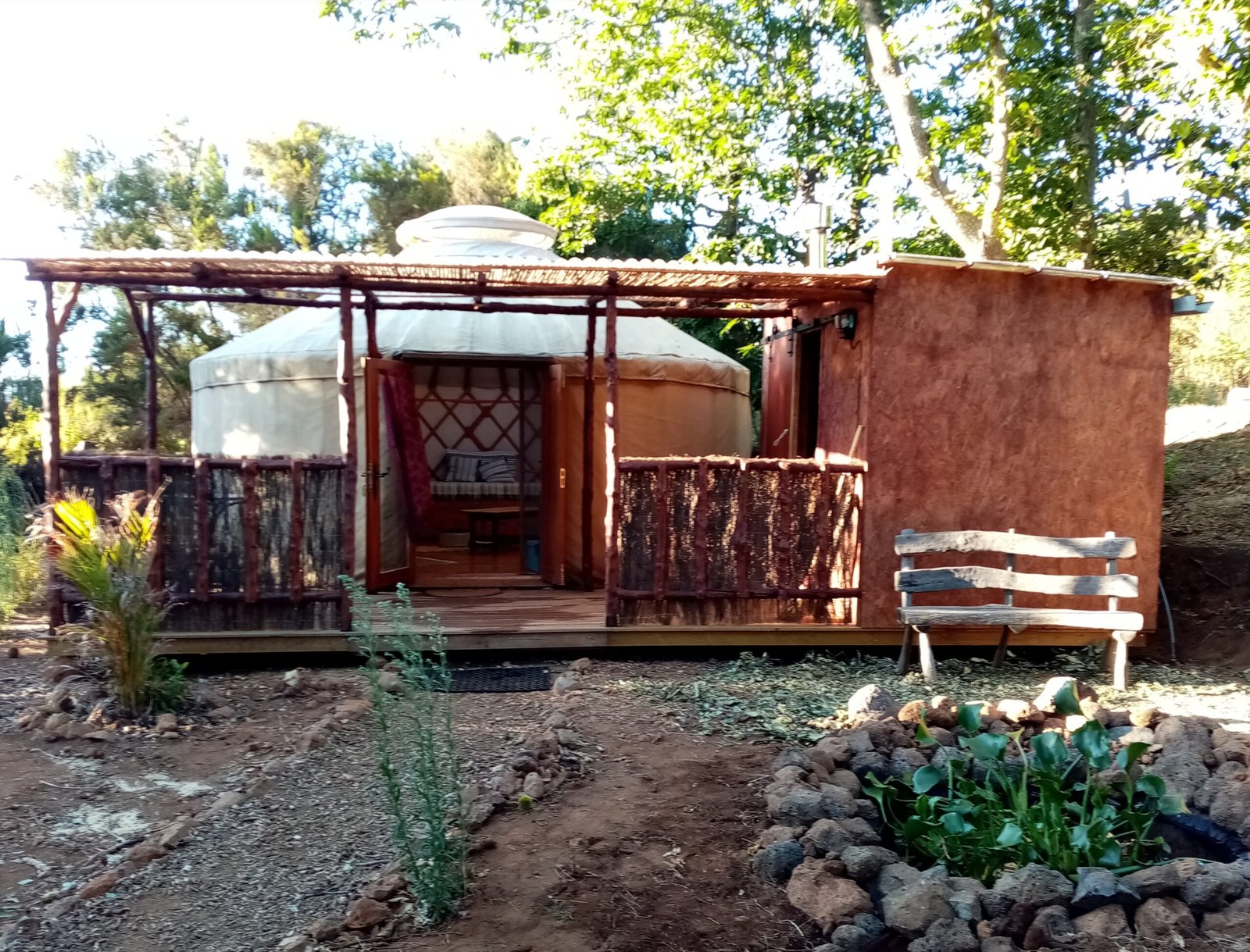 2 liebevoll nachhaltig gestaltete Unterkünfte und ein weitläufiger Garten laden dich ein anzukommen, zu Verweilen, Ruhe zu finden und neue Räume zu öffnen.